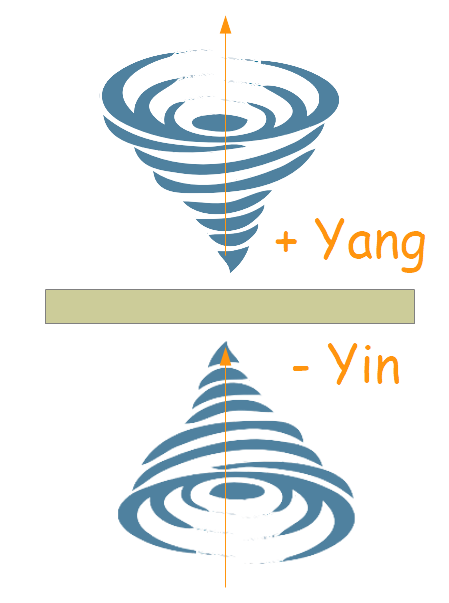 la Technologie Qiwood couplée à la géométrie sacrée va avoir pour effet de créer naturellement un vortex + sur une face et un vortex – sur l’autre face